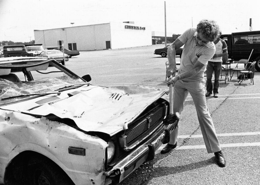 ハンマーで叩き潰されるという