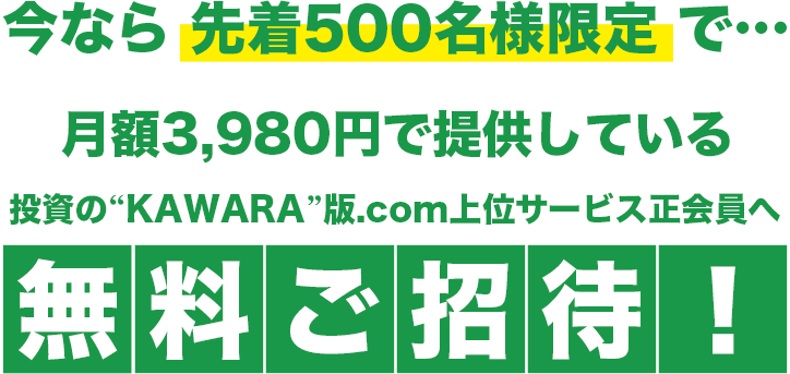 まずは「投資の“KAWARA”版.comの“正会員”へご登録」ください。