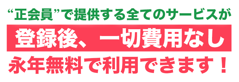 このページから正会員へご登録いただいた方は、永年無料で全てのサービスをご利用いただけます。