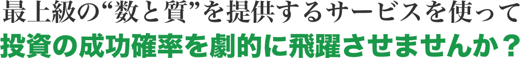 投資の成功確率を飛躍させる上では、